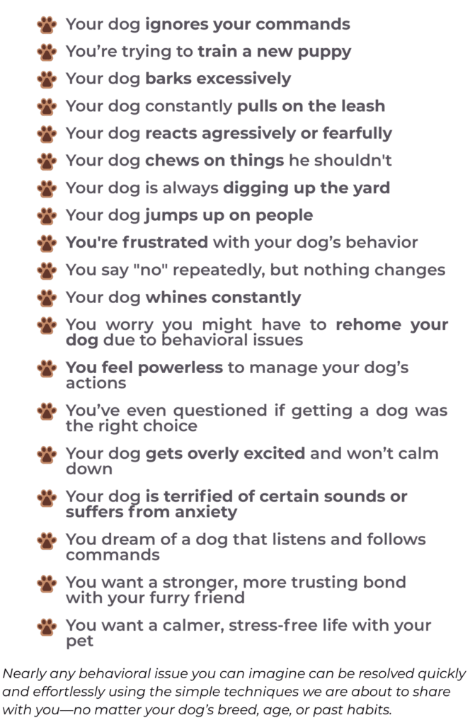 Nearly any behavioral issue you can imagine can be resolved quickly and effortlessly using the simple techniques we are about to share with you—no matter your dog’s breed, age, or past habits.